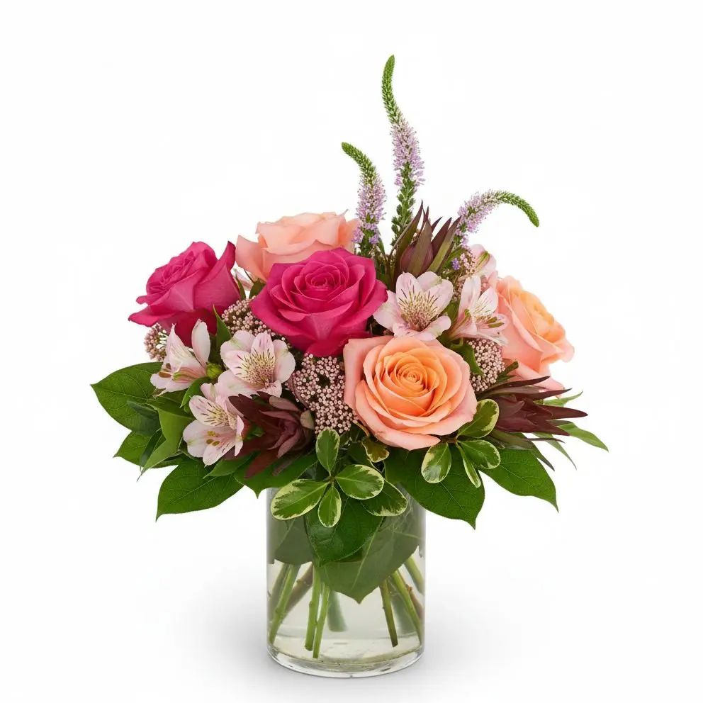 Immerse yourself in the delicate beauty of our Rose Garden Reverie bouquet, a harmonious blend of classic roses and charming accent flowers. This arrangement evokes a serene garden experience, bringing joy and elegance to any space. Perfect for celebrating special moments or brightening someone's day.